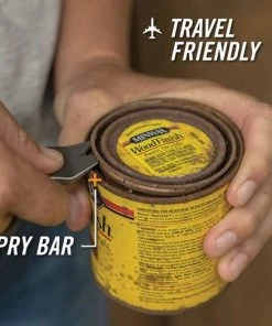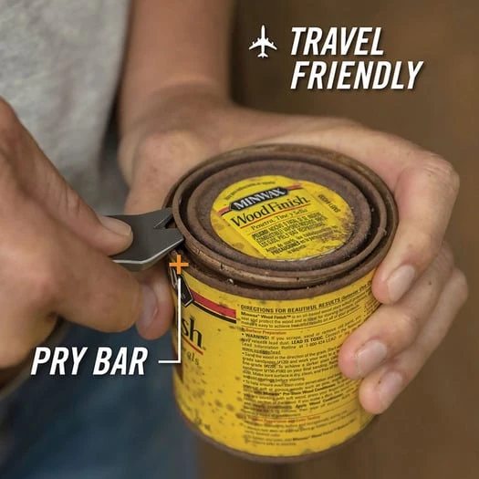 Pry bar l Pocket clip l Flat head screwdriver l Bottle opener l Wire stripper l Lanyard loop. Nail puller. Graphite finish stainless construction with green micarta onlay.