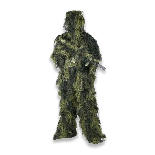 Ghillie Suit consists of four parts: tunic, pants, hat and weapon camouflaging tape. The garments are made out of breathable mesh with userโs silhouette obliterating camouflage attached. Thanks to its design the suit can be worn over the clothes or uniform. Slotted pockets inside tunic and pants allow access to equipment buried beneath the suit. The hat camouflages head and face, protecting it also against insects, and weapon camouflaging tape obliterates the weapon silhouette. Ghillie Suit is meant for scouts, snipers and civilian enthusiasts.