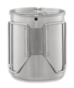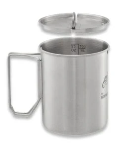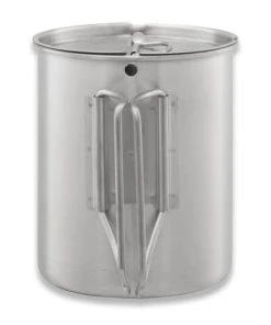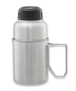 PATHFINDER 32 oz Stainless Steel Water Bottle with Nesting Cup Set is a convenient water preparation kit for your camping trip. Thanks to the well-thought-out design, the bottle fits in the cup, and so we will save a lot of space in a tactical backpack or bushcraft bag. The fold-out cup holder allows you to safely operate it near the camping stove, and the lid added to the set will speed up the cooking process. The wide mouthpiece of the bottle allows you to draw water into it from extremely shallow streams, and the silicone seal prevents it from spilling during transport.