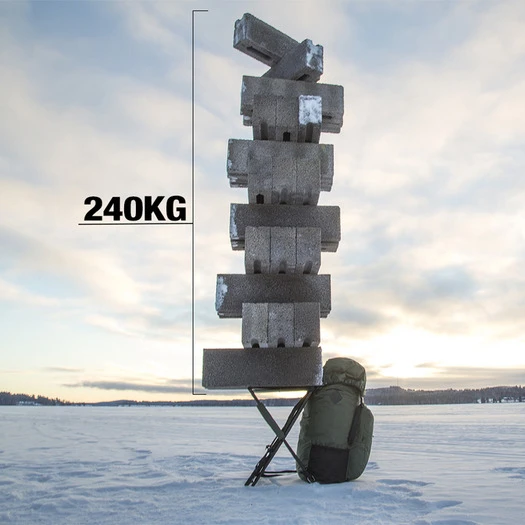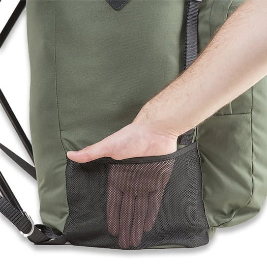 Savotta Chair Rucksack 360 is a classical stool rucksack, which suits excellently for an ice fisher, a hunter or a hiker. The framework of the rucksack is manufactured from a strong steel pipe, which certainly will endure sitter’s weight. There are also two detachable soft pads on the framework, that can be attached for instance to the bottom of a hunter’s gun to avoid knocks.