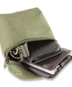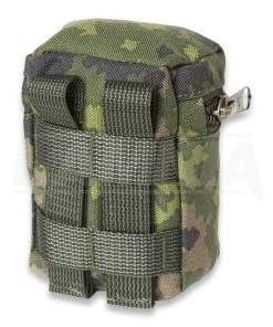 Excellent for small items. This general-purpose pouch, slightly larger than a man’s fist, can nicely be attached to a backpack, belt or shoulder strap. Equipped with a zipper, the pouch helps you keep small, important items and valuables separated from other supplies. It is handy for storing things like fire-lighting equipment, a mobile phone, a digital pocket camera, fishing lures or hunting cartridges. Although it looks small, the pouch can easily accommodate a tasty 0.33-litre soft drink and, say, some candy bars. A flap equipped with an 8-mm zipper closes the pouch in a splash-proof manner. There is a metal drain ring at the bottom of the pouch.